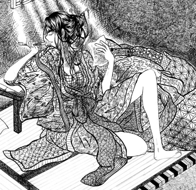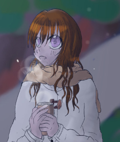 モノクロの原稿をちょっと塗っただけなので、髪がベタで真っ黒なのです。