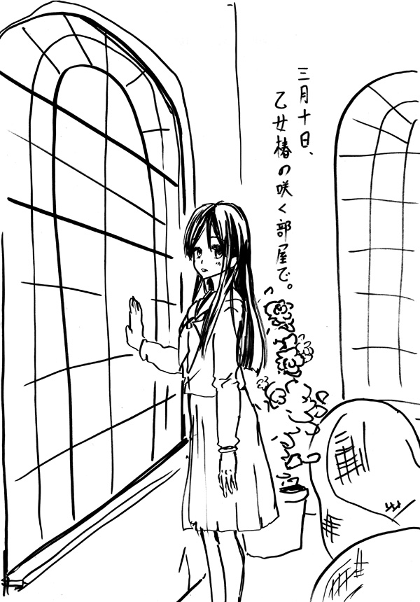 あと、窓から見える景色を、下手に椿だけ描いちゃって違和感。