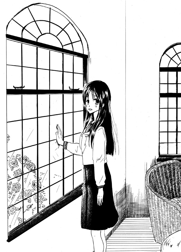 あと、窓から見える景色を、下手に椿だけ描いちゃって違和感。