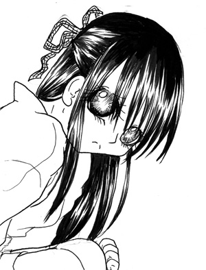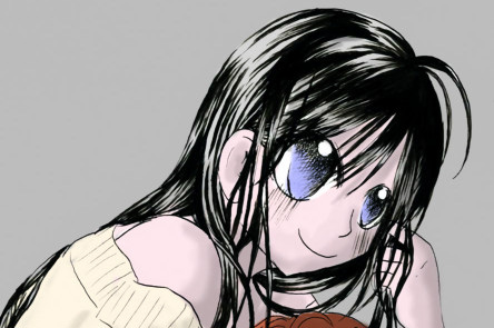 モノクロの原稿をちょっと塗っただけなので、髪がベタで真っ黒なのです。