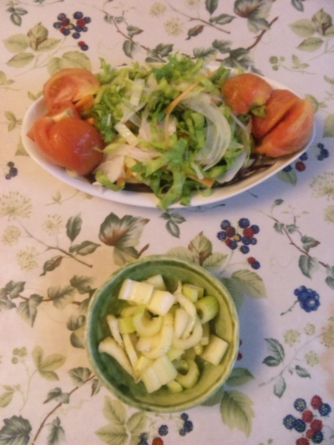 上のが蒸しナスサラダなんだけど、肝心のナスがレタスとかに埋もれてる。