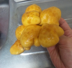 ゼラチンを必要量の倍以上入れたから、すごく堅い。